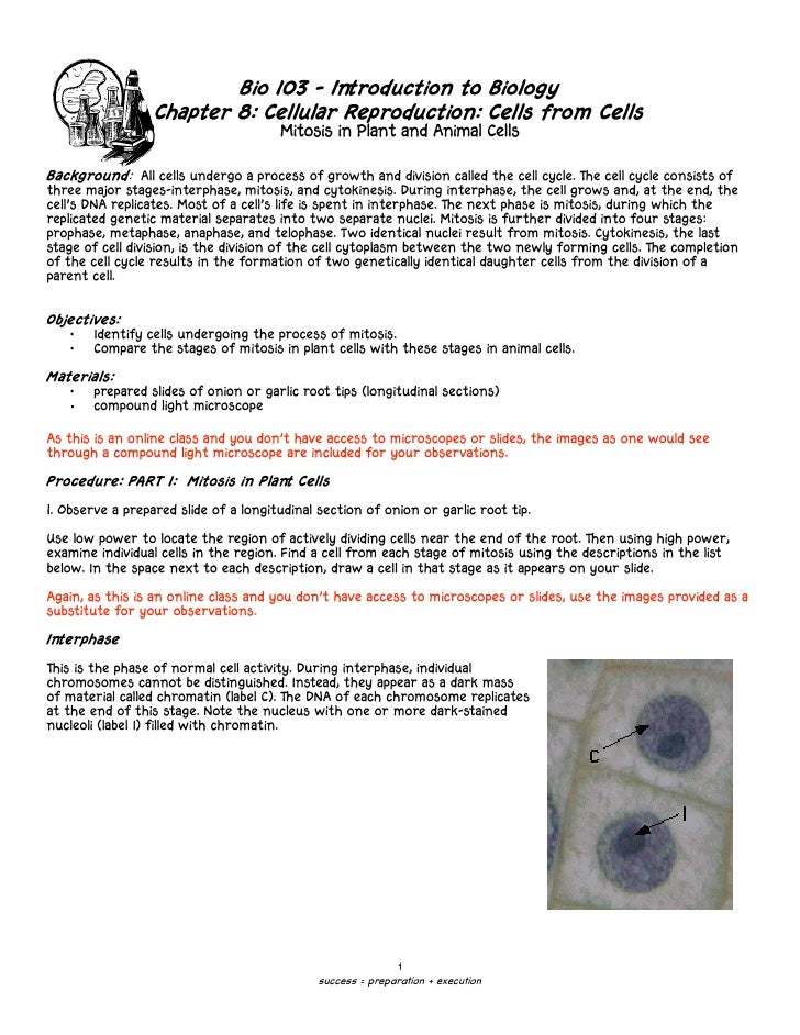 Check out our complete mitosis definition guide, with a breakdown of the 4 stages and mitosis vs. Where do cells come from?[caption caption=3d image of a mouse cell in the final stages of cell cells regulate their division by communicating with each other using chemical signals from special just like in mitosis, the parent cell uses this time to prepare for cell division by gathering nutrients. Normal cell division in all cells, except germ cells, occurs by 2 mechanical processes that initially divide the nucleus then the cell cytoplasm. In each pair, one chromosome comes from mum and the mitosis: The daughter protoplasts deposit cellulose, hemicellulose and pectin on either side of the. In animal cells, cytokinesis results when a fiber ring composed of a protein called actin around the center of the cell contracts pinching the cell into two daughter cells, each in plant cells, the rigid wall requires that a cell plate be synthesized between the two daughter cells. In cell biology, mitosis (/maɪˈtoʊsɪs/) is a part of the cell cycle in which replicated chromosomes are separated into two new nuclei. Centrioles help organize cell division. The chromosomes spread back out in their 'new' nucleus and the. The three types of cell division that occur in animal cells are 1. interphase (the cell when not undergoing mitosis, but the dna is replicated), prophase, metaphase, anaphase, and telophase. The cells in this image are in various stages of mitosis. In each round of division, cells go through four stages: